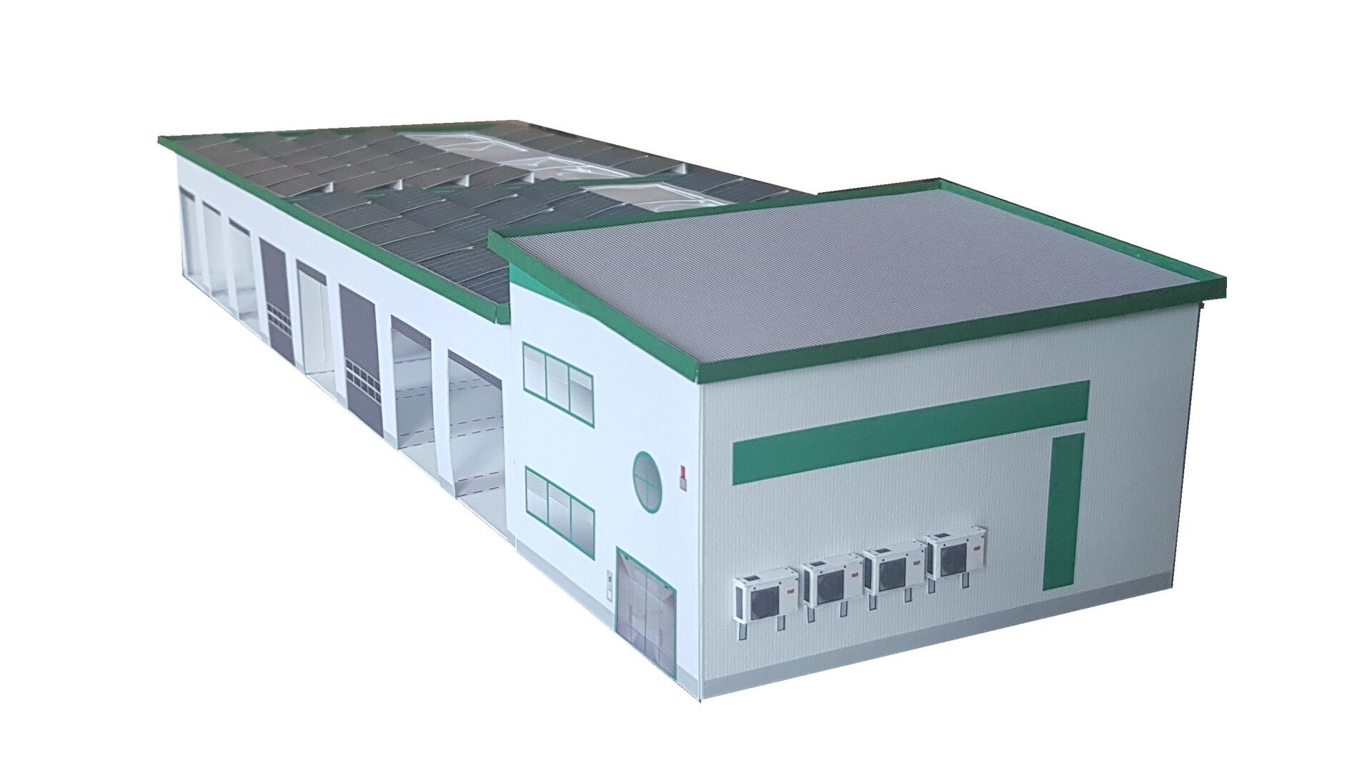 Ein ideales Gebäude, um Ihre Busmodelle zu präsentieren, ebenso dazu geeignet, einen LKW-Betriebshof zu gestalten.