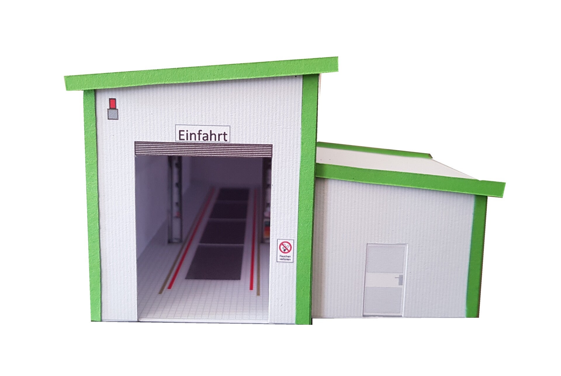 Lieferumfang: Kartonbausatz für Waschanlage inkl. Büroanbau wie beschrieben inklusive ausführlicher Anleitung