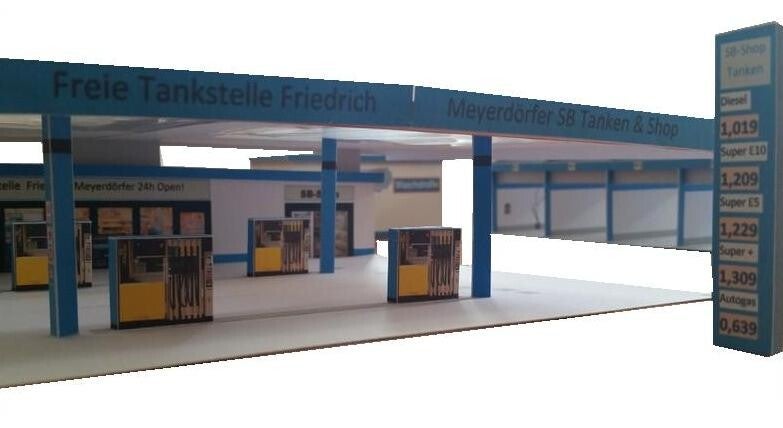 Mit vielen Details wie Zapfsäulen, Preistafel, Füllklappen u.v.m.