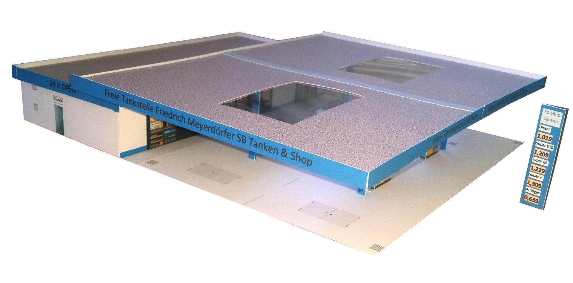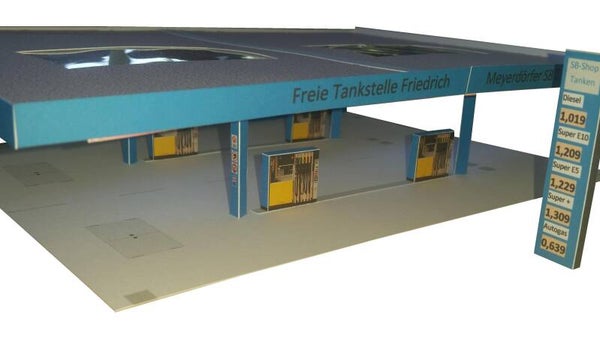 Mit vielen Details wie Zapfsäulen, Preistafel, Füllklappen u.v.m.