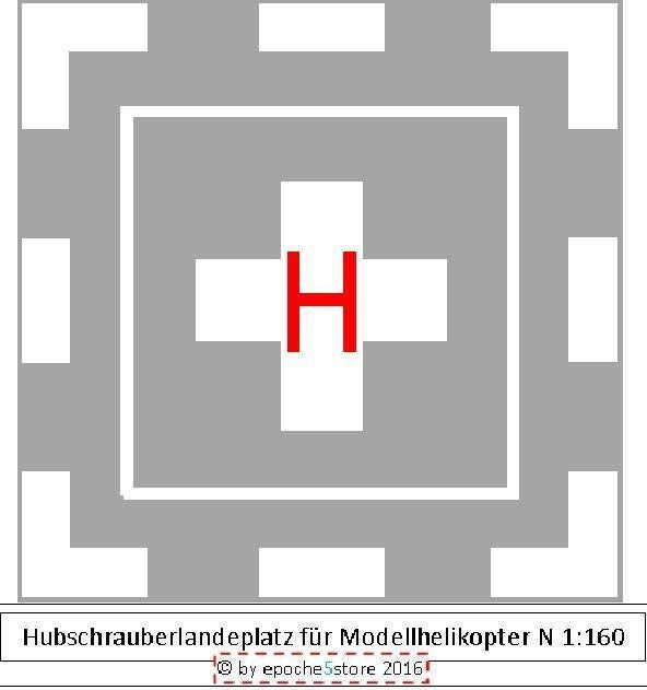 ---Material: Fotokarton, brillante Druckqualität--- Vorbildgerechte Ausführung. Größe: 125 x 125 mm, entspricht im Original den Abmessungen 20 x 20m.Einfacher, aber originalgetreuer Landeplatz, der dem vorbildgerechten Landen Ihres Helis nicht mehr im Wege steht. Ideal zauch für die Modelleisenbahn oder auf einem Brettchen zum Landen des kleinen Modellhelis.
