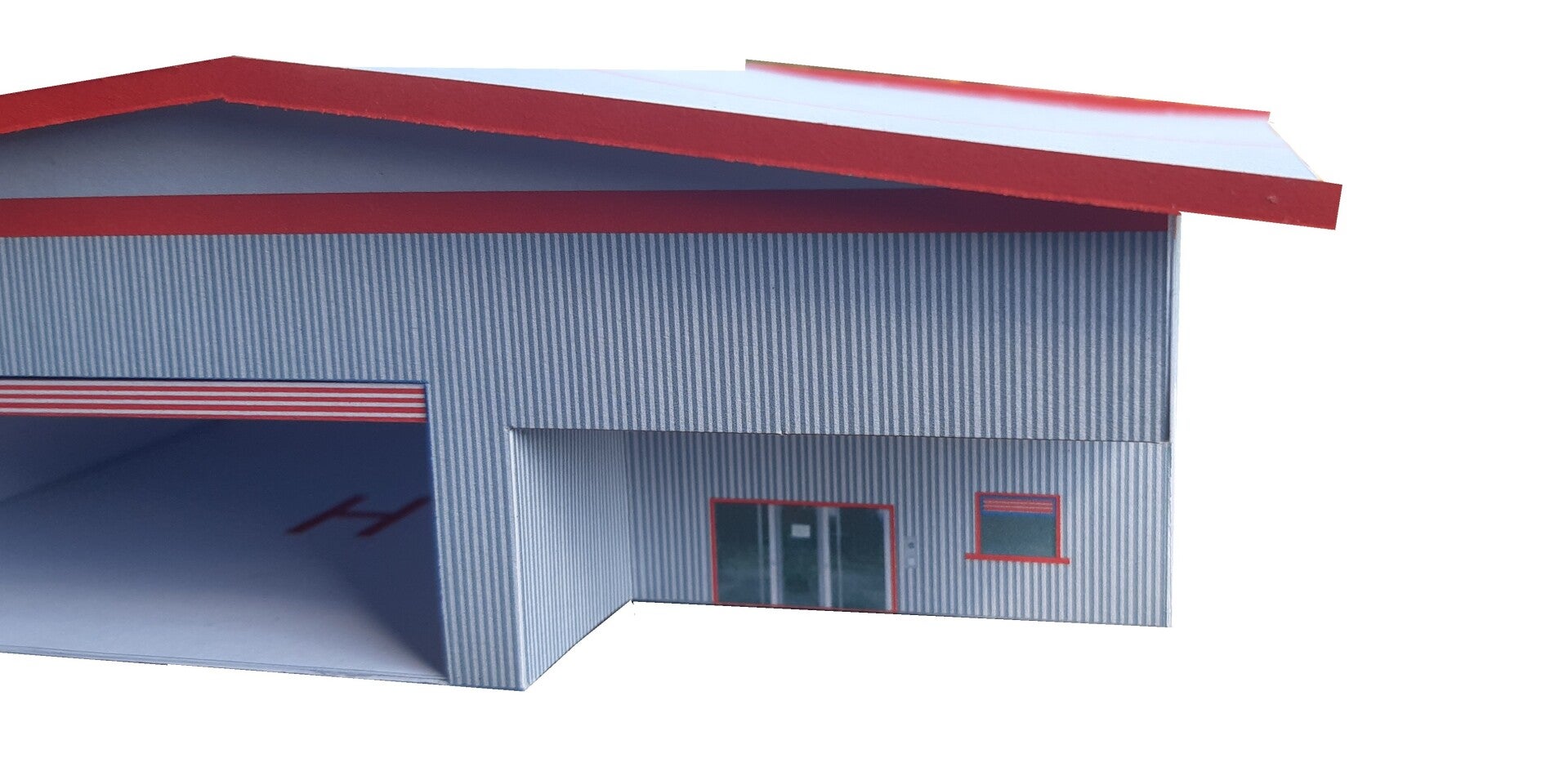 Der Zusammenbau kann entweder mit geschlossenem oder offenem Rolltor erfolgen, für den offenen Aufbau liegen 2 Innenwände mit Details wie Feuerlöscher etc. bei.