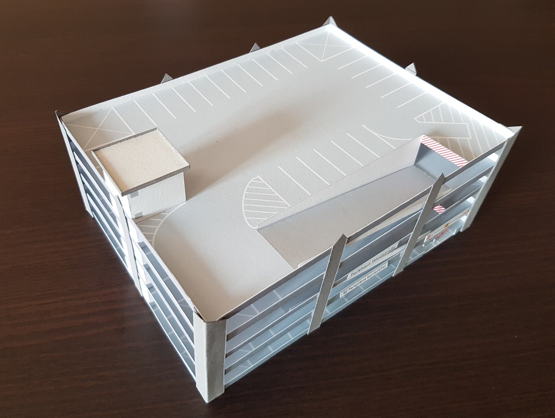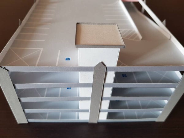 Sehr viele Details vom Vorbild wie Fahrstuhlschacht, Rampen, Markierungen und Schilder flossen in diese Konstruktion mit ein, um dem Vorbild in nichts nach zu stehen.