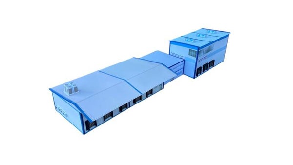 passender Sockel für "Logistikzentrum/Logistikhalle" und "Logistikzentrum mit Vordach", dachtechnisch gefällebedingt angepasst
