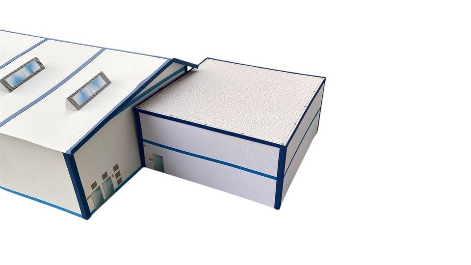 Kartonbausatz wie beschrieben für Logistikhalle und Verwaltung